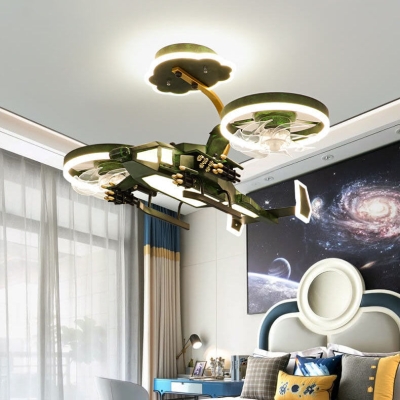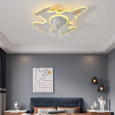 Modern Cartoon Aircraft Dimmable LED Kids Flush Mount Ceiling Fan Light