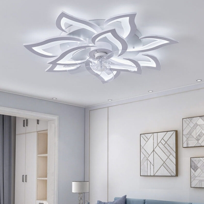 Scandinavian Modern Luxury Flower Iron Acrylic Plastic LED Flush Mount Ceiling Fan Light