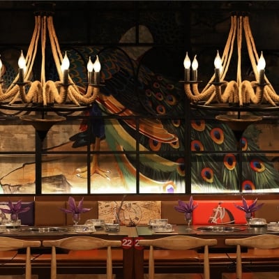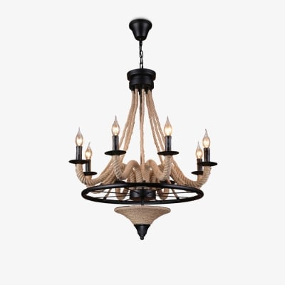 Hemp Rope Industrial Six Head Chandelier