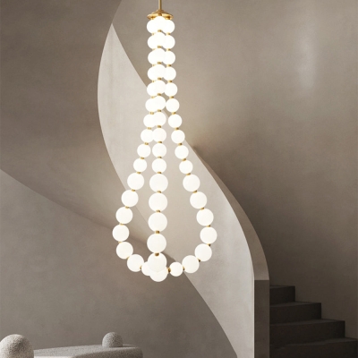 White LED Pearl Necklace Chandelier For Stair