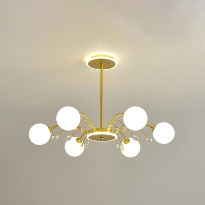 Modern 6-Light Gold Glass Semi Flush Chandelier