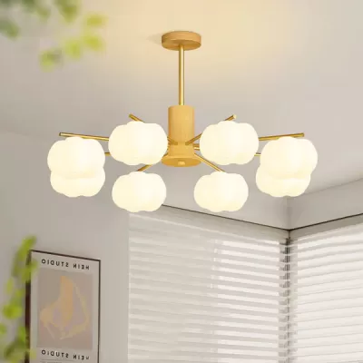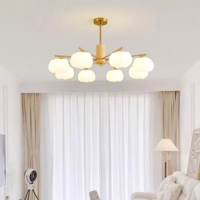 Cream Style Wooden Cotton Balls Chandelier For Living Room