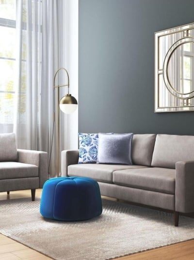 Minimalist Brass Floor Lamp with Fabric Shade