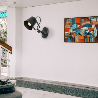Brady Modern Bucket Metal Adjustable Wall Lamp, Black/Rust