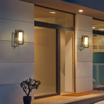 Orr Modern Rectangular Metal Outdoor Wall Lamp, Black/White