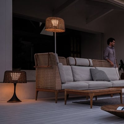Ritta wasserdichte Außenstehleuchte, Rattan Schwarz/Weiß Balkon/Terrasse