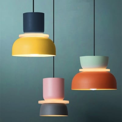Morandi Colorful Shade Single Pendant Lights, Wood & Metal