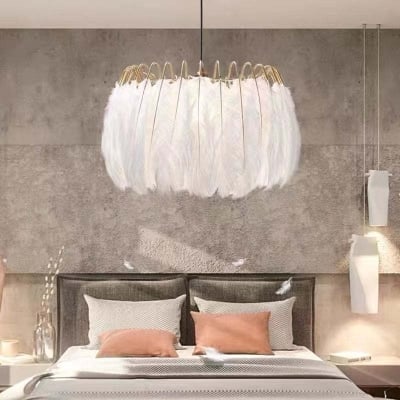 O'Moore Elegant Feather Pendant Light, Black/White, Bedroom/Living Room
