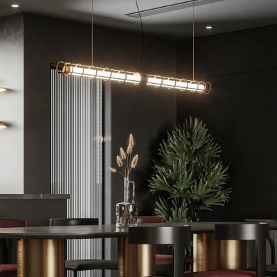 Edge Modern Minimalist Liner Metal/Acrylic Pendant Light, Gold/Black