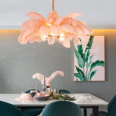 O'Moore Nordic Luxury Pendant Light, Brass/Feather