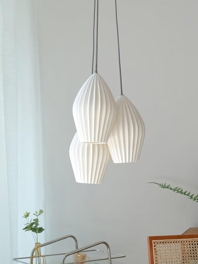 Gerippte Pendelleuchte aus Keramik