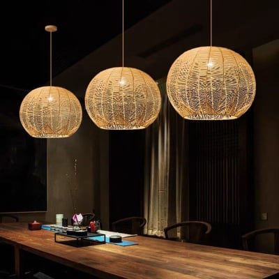 Ritta Designer Round Handmade Rattan Pendant Light, Dining Room