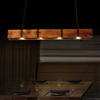 Alessio Vintage Linear Wood Pendant Light, Living Room/Restaurant