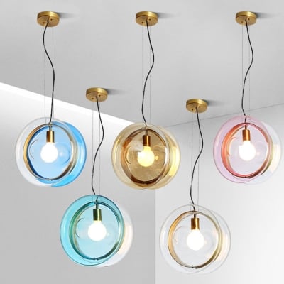 Hailie Art Round Glass Pendant Light, Metal&Glass, 6 Color