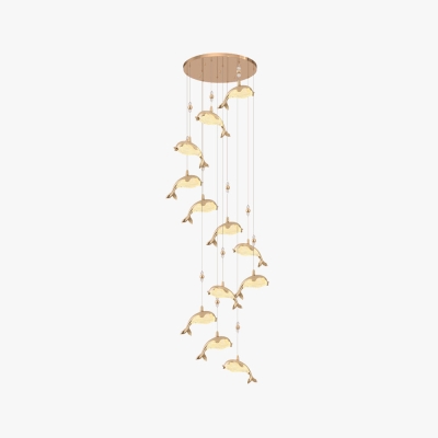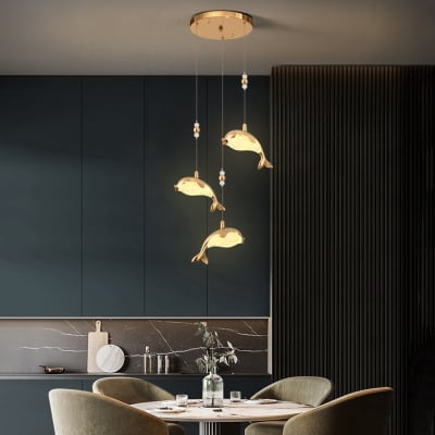 Jibril Modern Dolphin Metal Pendant Light, Gold, Metal/Acrylic