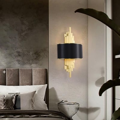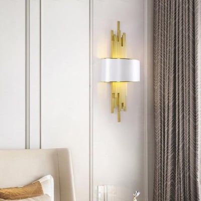 Modern Fabric Hardware Column 2-Light Wall Sconce Lamp