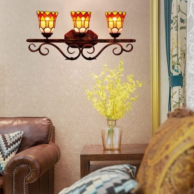 Traditional Tiffany European Vintage Stained Glass Mirror Front Light 3-Light Wall Sconce Lamp
