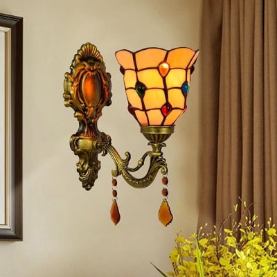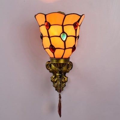 Traditional Tiffany Crystal Glass Pendant 1-Light Wall Sconce Lamp