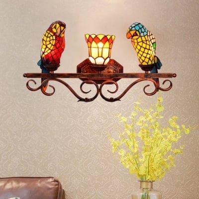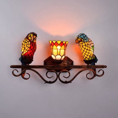 Traditional Tiffany European Retro Parrot Decorative 3-Light Wall Sconce Lamp