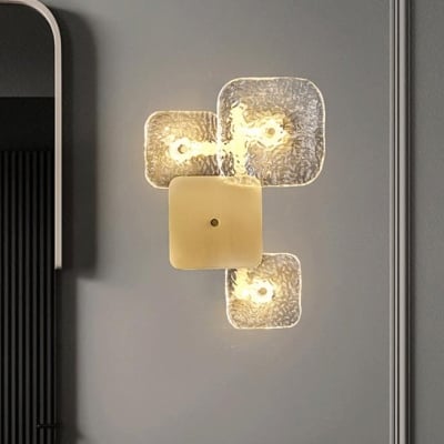 Post-modern Glass Brass Patchwork Square LED Wall Sconce Lamp