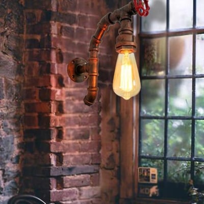 Contemporary Industrial Iron European Retro Water Pipe 1-Light Wall Sconce Lamp