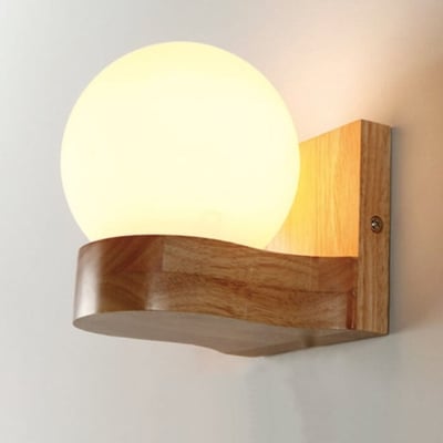 Modern Japanese Glass Shade Spherical 1-Light Wall Sconce Lamp