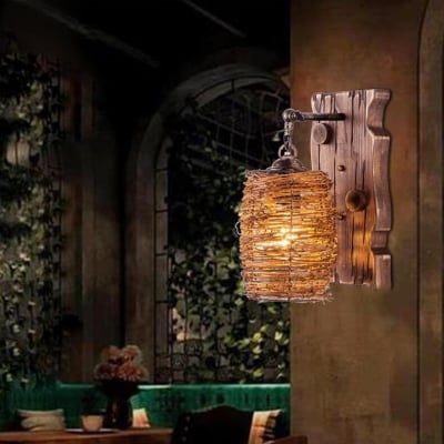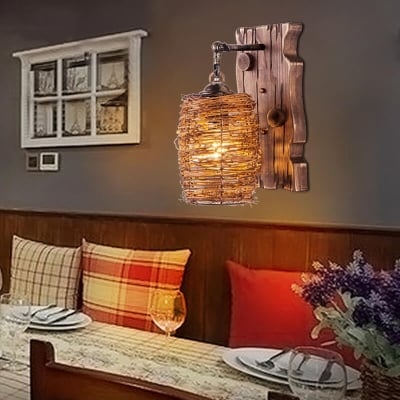 Vintage Original Wood Cylinder Shade Antique 1-Light Wall Sconce Lamp