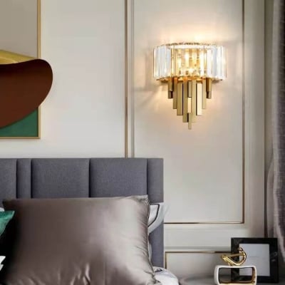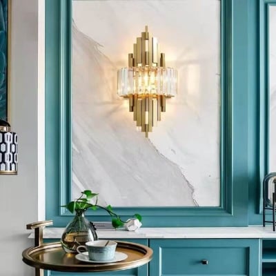 Modern Luxury Crystal Columnar 2-Light Wall Sconce Lamp