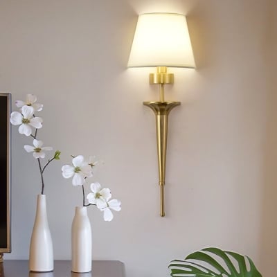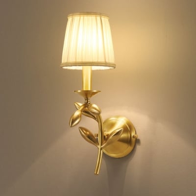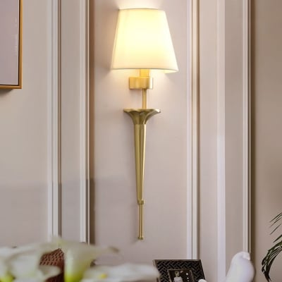 Luxury Fabric Shade Brass Base 1-Light Wall Sconce Lamp