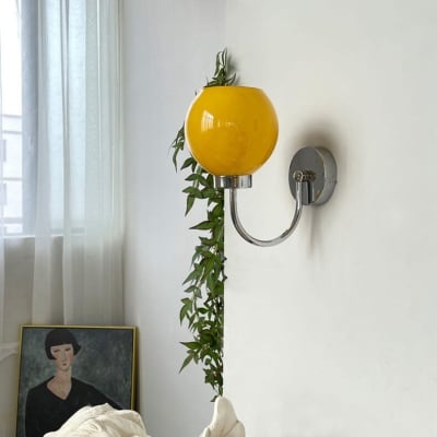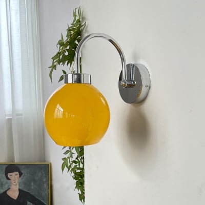 Vintage Yellow Glass Orb Shade 1-Light Wall Sconce Lamp