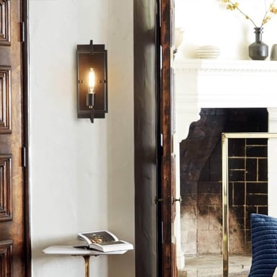 Industrial Vintage Wrought Iron Square 1-Light Wall Sconce Lamp