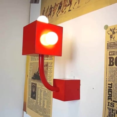Vintage Red Square Iron 3-Light Wall Sconce Lamp