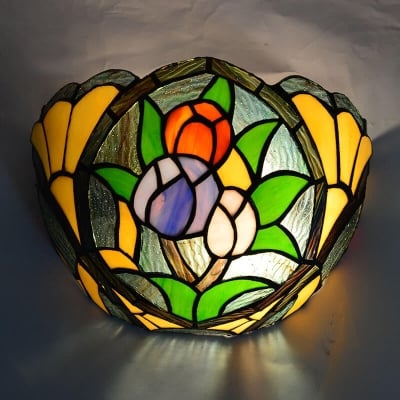 Vintage Tiffany Flower Stained Glass Bowl 1-Light Wall Sconce Lamp