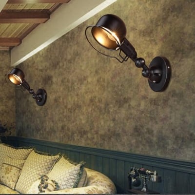 Industrial Iron Dome Shade Rotatable 1-Light Wall Sconce Lamp