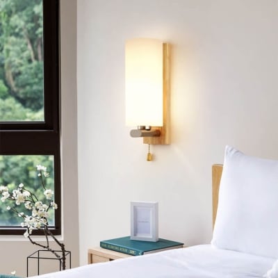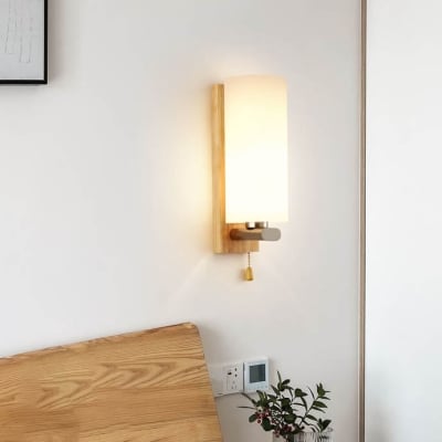 Nordic Wooden Glass Cylindrical 1-Light Wall Sconce Lamp