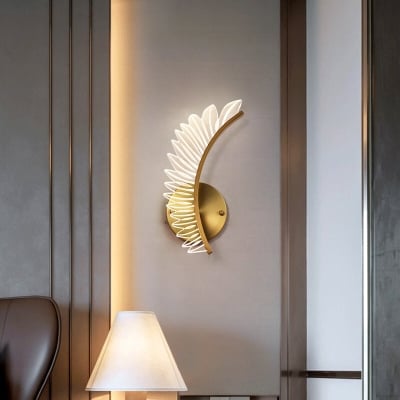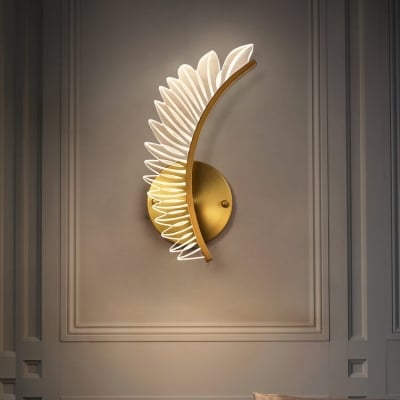 Modern Acrylic Feather Gold Copper LED Wall Sconce Lamp