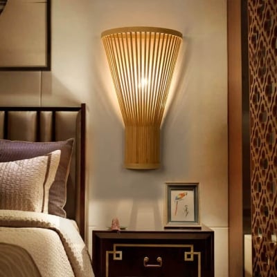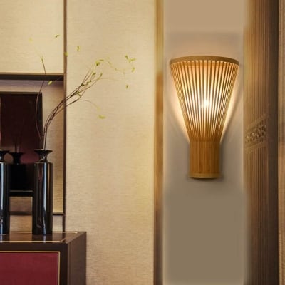 Vintage Bamboo Half Fan 1-Light Wall Sconce Lamp
