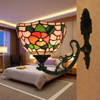 Tiffany European Stained Glass Flower 1-Light Wall Sconce Lamp