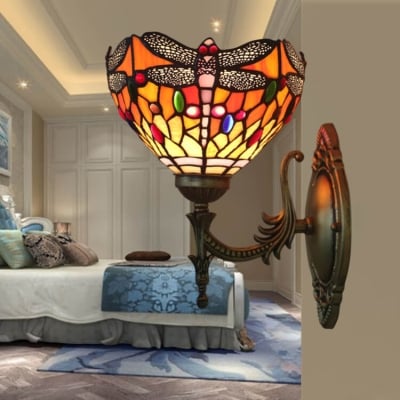 Tiffany Retro Dragonfly Glass 1-Light Wall Sconce Lamp