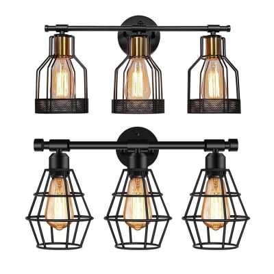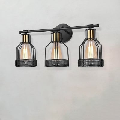 Vintage Industrial Wrought Iron Cage 3-Light Wall Sconce Lamp