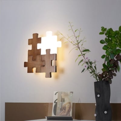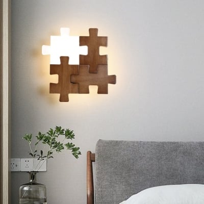 Nordic Wood Puzzles 1-Light LED Wall Sconce Lamp
