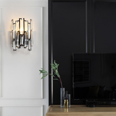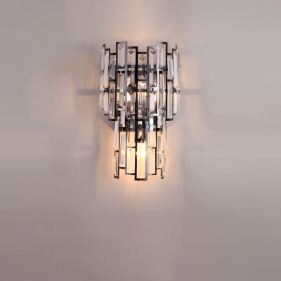 Modern Luxury Half Cylinder Stainless Steel Crystal 1-Light Wall Sconce Lamp For Living Room