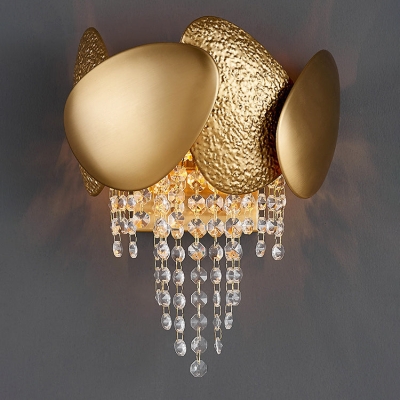 Contemporary Luxury Irregular Oval Piece Iron Crystal 2-Light Wall Sconce Lamp For Living Room