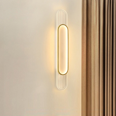 Modern Simplicity Imitation Wood Grain Edging Acrylic Grille Ellipse Shade LED Wall Sconce Lamp For Living Room