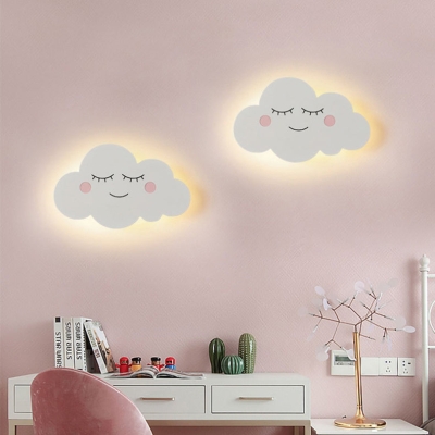 Contemporary Creative Cartoon Smiley Cloud Iron Acrylic Shade LED Kids Wall Sconce Lamp For Bedroom