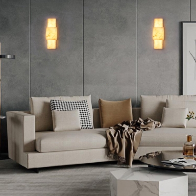 Modern Minimalist Rectangular Metal Marble LED Wall Sconce Lamp For Living Room