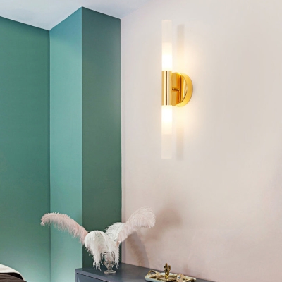 Contemporary Simplicity Full Copper Column 2-Light Wall Sconce Lamp For Living Room