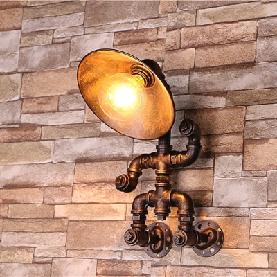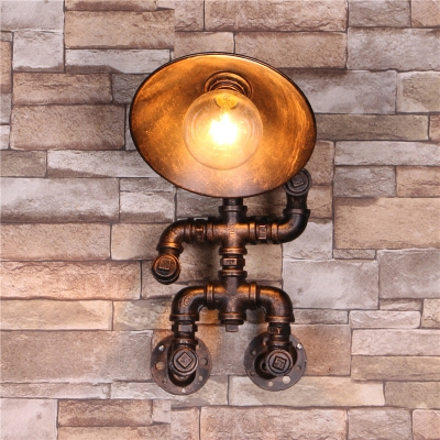 Contemporary Industrial Dome Pipe Iron 1-Light Wall Sconce Lamp For Living Room