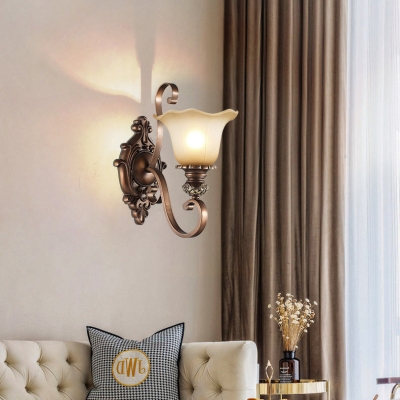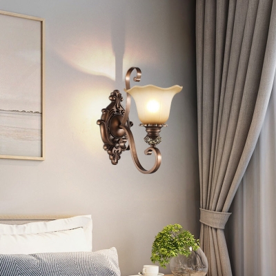 Traditional Rustic Frosted Glass Flower Shade Iron Resin 1/2 Light Wall Sconce Lamp For Bedroom