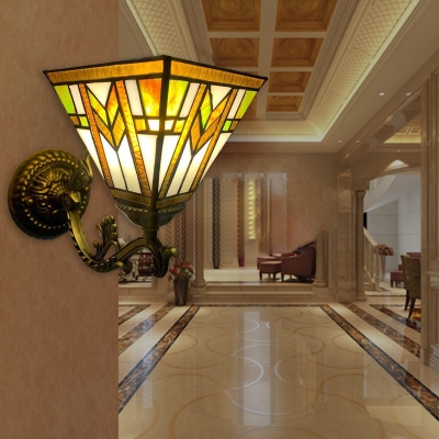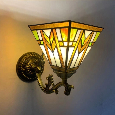 Traditional Tiffany Stained Glass Geometric Pyramid Shade 1-Light Wall Sconce Lamp For Bedroom